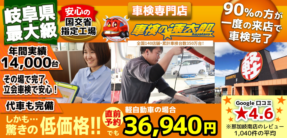 | 店舗名 | 「車検の速太郎」那加岐南店 |