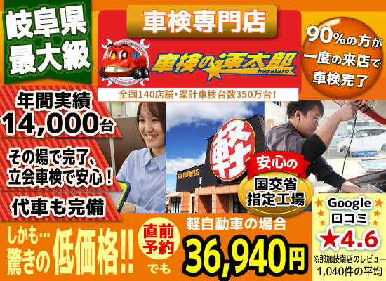 各務原市の車検専門店 「車検の速太郎」那加岐南店