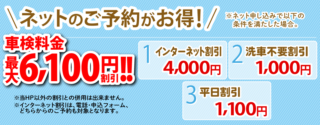 平日に車検をご予約頂いたお客様は、車検料金から割引をさせて頂きます。