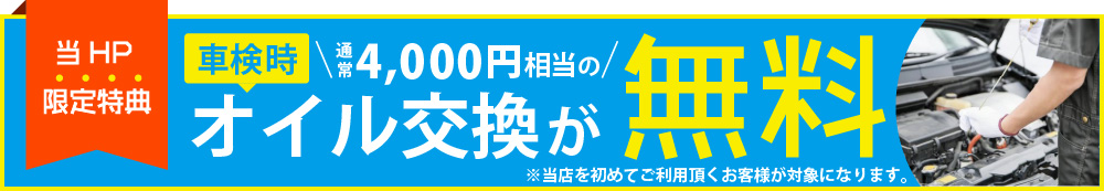 当HPより車検をご予約頂いたお客様には、車検時にオイル交換を無料で実施させて頂きます!
