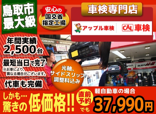 | 店舗名 | アップル車検・CAL車検CAL車検 湖山店 |
