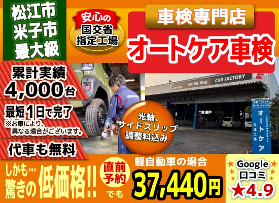米子・境港市エリアの車検専門店 オートケア車検 米子店